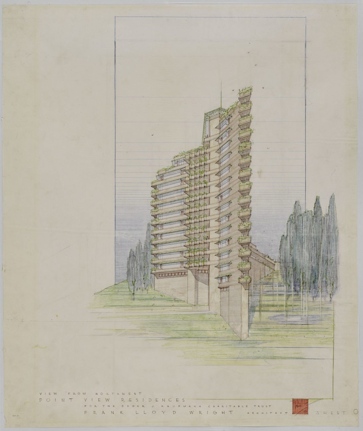 Due to their light-sensitive nature, all materials from the Avery Architectural & Fine Arts Library are printed reproductions. Please visit their Frank Lloyd Wright Collections site for more details about the collection and research access.