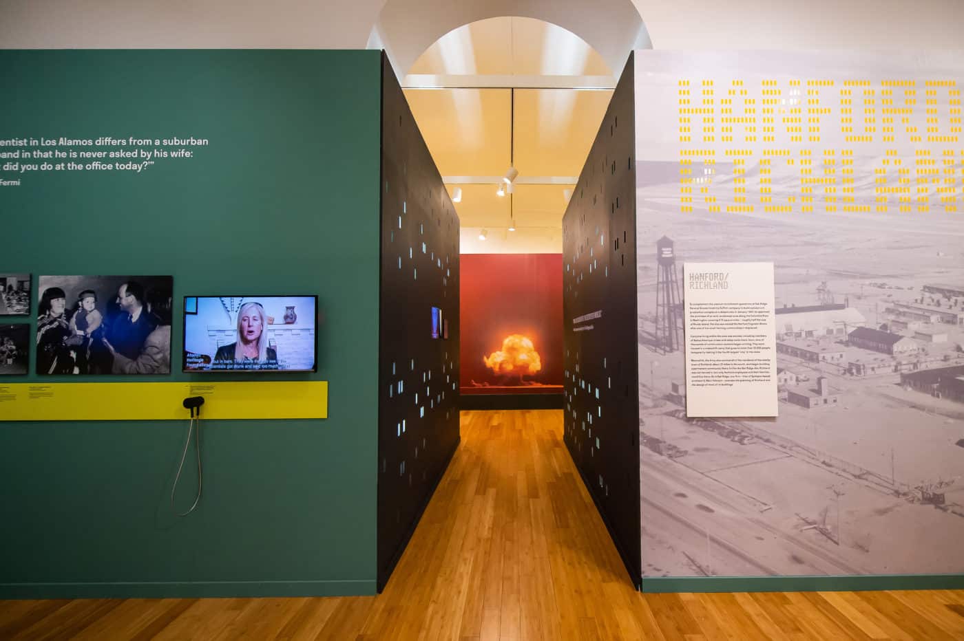 The exhibition addresses each city’s development since the conclusion of the Manhattan Project, and their continuing importance as centers of research and technology, now largely devoted to non-military purposes.