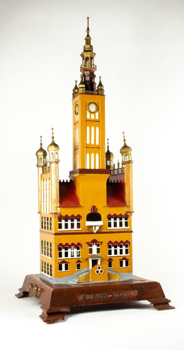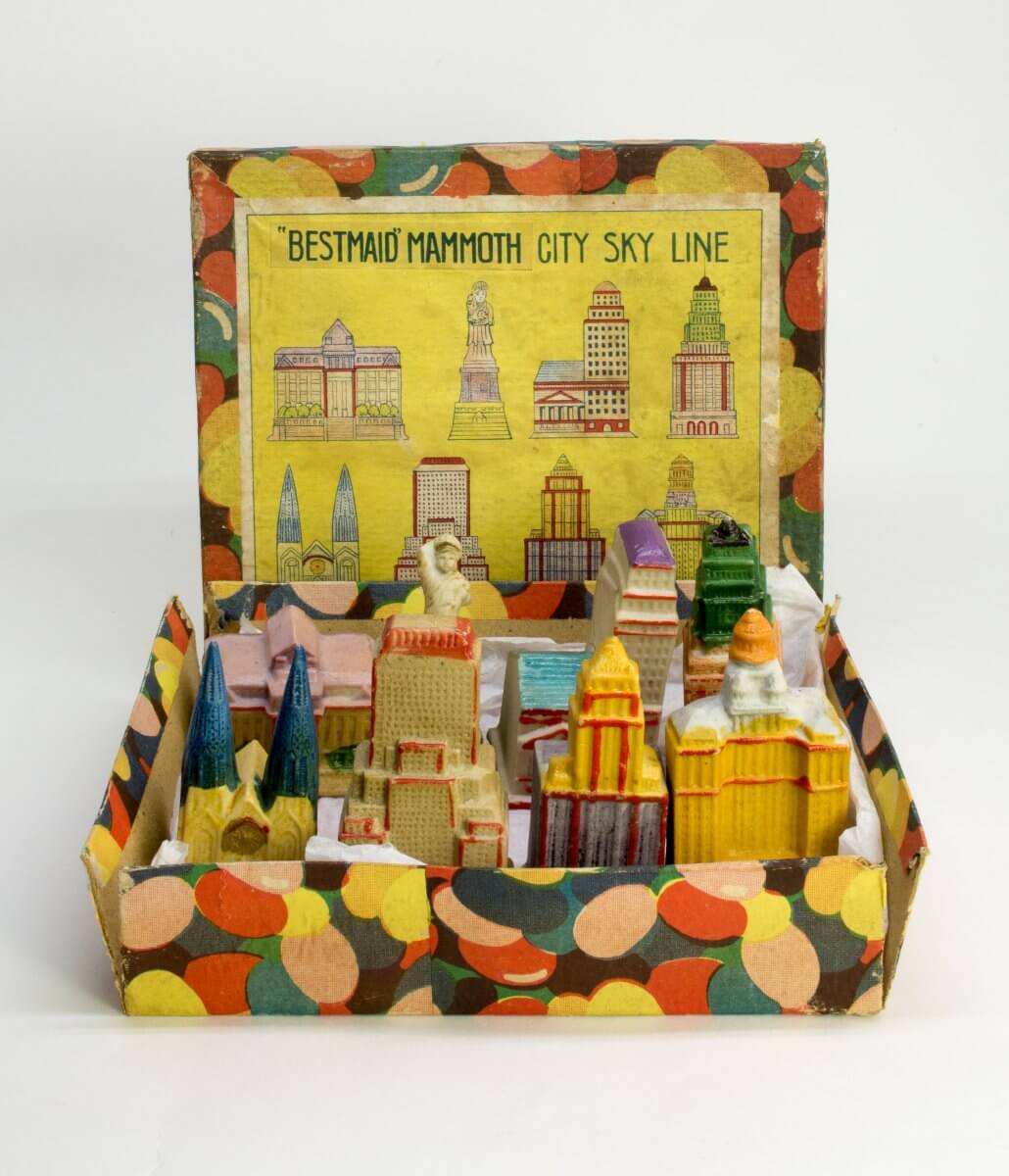 The 400 structures on view in this exhibition range from awe-inspiring architectural wonders and feats of engineering to less remarkable—but to the right person, just as meaningful—department stores, insurance companies, and factories. Not intended to be accurate models of the built world, these miniatures can be abstract or highly detailed, or altogether make-believe. Many also have practical uses, doing double-duty as coin banks, bookends, thermometers, or clocks.